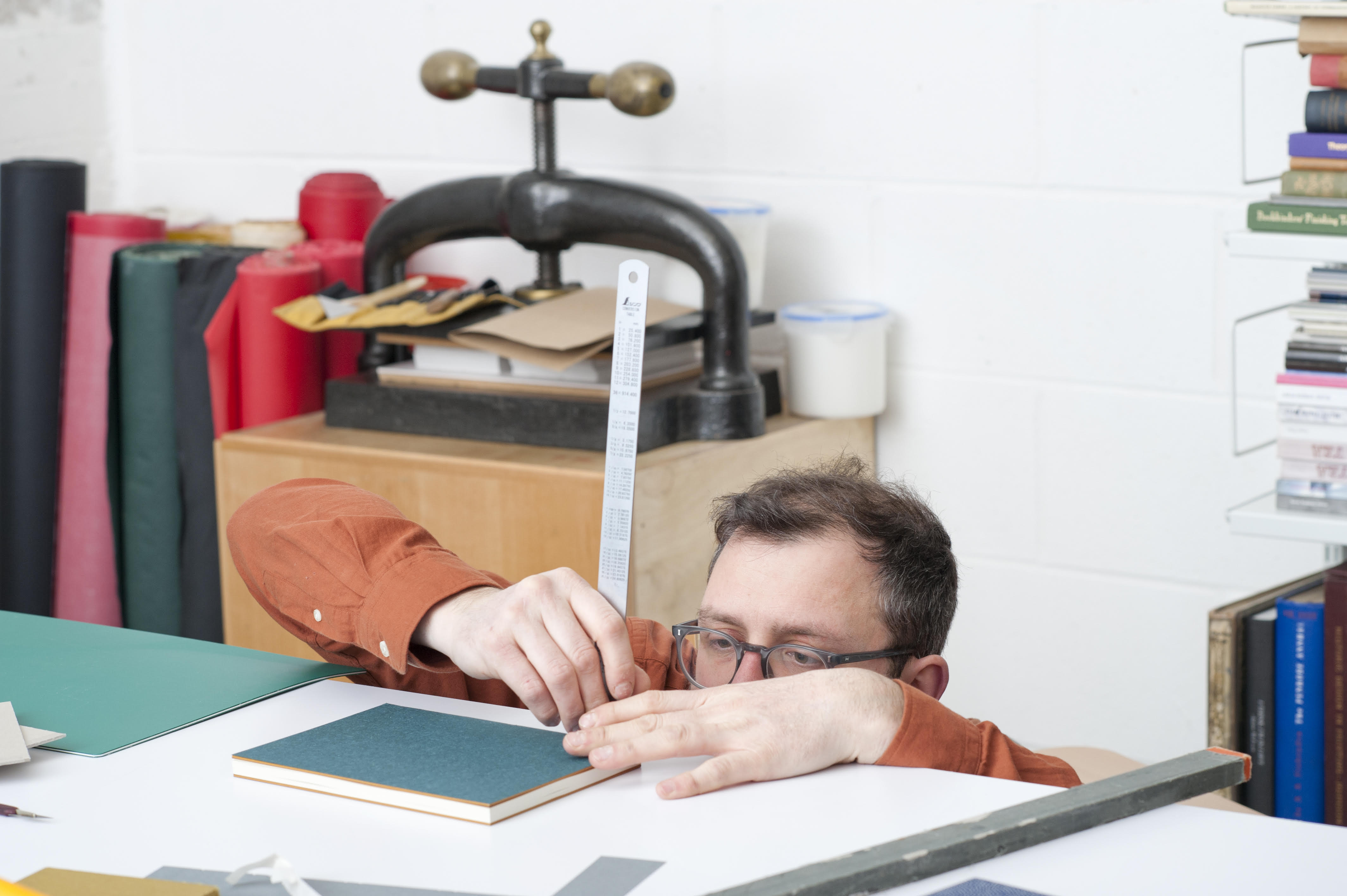 Simon Goode founded the London Centre for Book Arts in 2012 with partner Ira Yonemura, the first and only Centre dedicated to book arts in the United Kingdom. He studied Book Arts and Crafts at London College of Printing, where he was taught a practical and craft-based approach to book arts. He teaches book binding and printing, and is a Lecturer in Graphic Design Communication at Central Saint Martins College of Art and Design, University of the Arts London. He is co-author of Making Books: a guide to creating hand-crafted books by the London Centre for Book Arts (Pavilion Books, 2017) and a contributor to Books: Art, Craft and Community (Ludion, 2021).